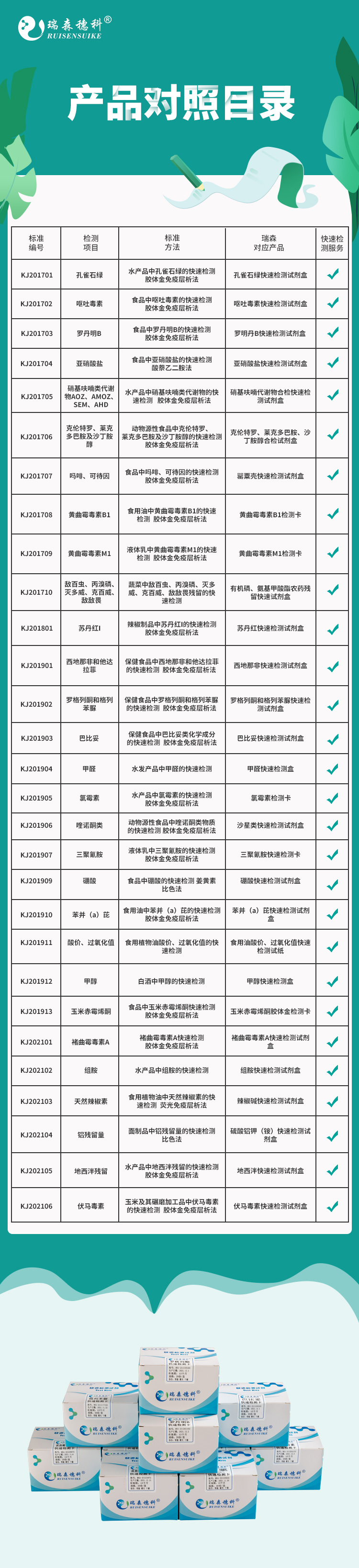 市場總局30種快檢方法對應(yīng)瑞森產(chǎn)品目錄
