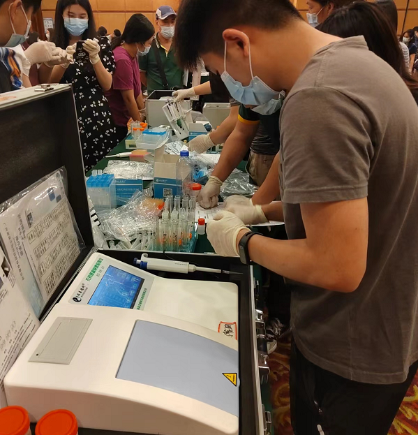 在實(shí)操培訓(xùn)環(huán)節(jié),現(xiàn)場采取分組的形式進(jìn)行,每組配備指導(dǎo)老師,及時(shí)解答參會(huì)人員在實(shí)操中遇到的問題。同時(shí),結(jié)合操作規(guī)范進(jìn)行詳細(xì)講解,針對(duì)性強(qiáng)、直觀效果比較好。從稱樣細(xì)節(jié)、樣品搖勻、移液、吹干、滴卡、讀卡等,均一一指導(dǎo)解答,有效提升了快檢從業(yè)人員理論知識(shí)和實(shí)操能力。
