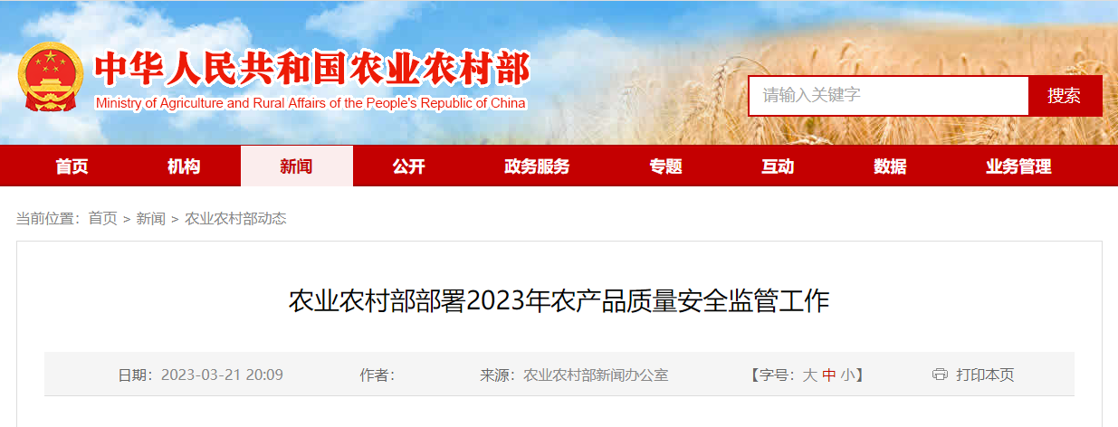 資訊 | 農(nóng)業(yè)農(nóng)村部部署2023年農(nóng)產(chǎn)品質(zhì)量安全監(jiān)管工作